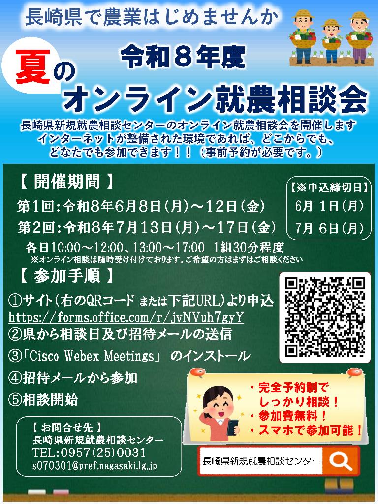 夏のオンライン就農相談会を開催します