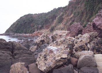 西彼杵半島は、主として堆積岩起原の変成岩で構成され、大部分は石墨(せきぼく)に富む黒色片岩であるが、一部に石墨を含まない石英片岩もあり、一括して西彼杵変成岩類とよばれている。これには所により、連続性のよい薄い緑色片岩や蛇紋岩などの緑色岩を伴う。長崎市三重海岸に露出する緑色岩には、陽(よう)起(き)石(せき)、緑(りょく)廉(れん)石(せき)、 緑(りょく)泥(でい)石(せき)、曹(そう)長(ちょう)石(せき)などの変成鉱物と共に、ヒスイ輝石が含まれている。ヒスイの存在は、九州大学理学部地質学教室西山忠男氏によって初めて確認され、正式には昭和53年(1978)3月に地質学雑誌で発表された。ヒスイは世界的に産出が稀な鉱物であり、多くの宝石ヒスイの原産地はミャンマーである。日本の産出では新潟県糸魚川市小滝が有名である。最大のものは長崎市科学館に保管されている。