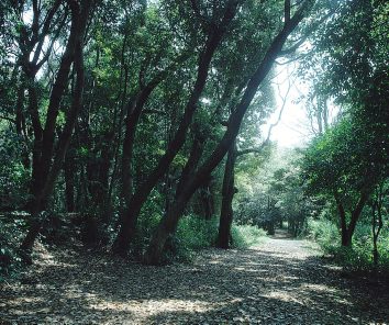 玖島城の二の丸、三の丸跡に繁茂する樹林で、玖島城当時からの巨木が群をなして生育している。樹叢を構成するのは、スダジイの巨木群のほか、クスノキ・モチノキ・ホルトノキ・クロガネモチ・アラカシ・ナナメノキ・ヤマモガシ・シロダモなどの常緑樹で、ムクノキ(落葉樹)には巨木が見出される。樹下には、ミミズバイ・カンザブロウノキ・クロキなどの常緑低木、ノシラン・ヤブラン・ナガバジャノケビ・ハナミョウガなどの常緑草本が生育して、照葉樹林特有の構成をよくあらわしている。植物分布上、ヒゼンマユミやコバノチョウセンエノキが生育するのも注目をひく。