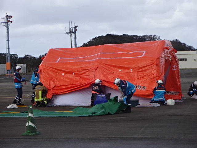 この訓練を開催することで、航空機の突発的な事故に備え敏速かつ適正な消火救難活動が出来ることを目的としています。対馬の空の玄関口を安全・安心に維持できるように、今後も各機関と連携し、訓練を通じて熟練度を向上していくように努めて参ります。