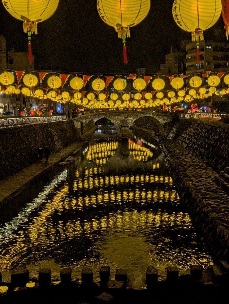 長崎市の新地中華街を中心に、各会場で様々なランタンが飾られ、中島川も会場の1つとなっています。