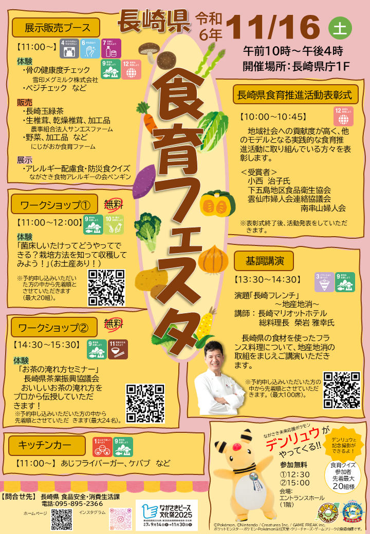 その一環として、地域活動や学校、幼稚園、保育所等で、「食」や「農林水産」の知識や経験等のお話、郷土料理などの調理実習、体験の受け入れ等をしていただける「長崎県食育ボランティア」を登録しています。