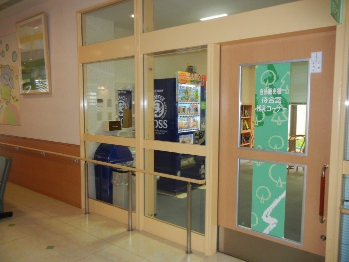 館内には食堂・売店はございませんが、本館1階の『自動販売機待合室コーナー』では。飲料(清涼飲料水・乳飲料等)及び食品(プリン・ヨーグルト等)を自動販売機で販売しています。(不定期ですが、本館1階の『待合ホール』では、業者によるパン・菓子類等の販売もございます。)