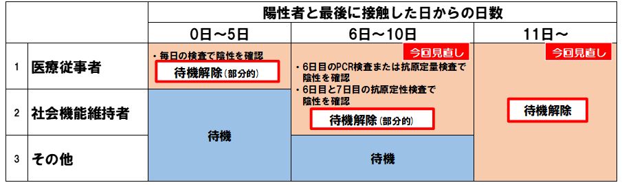 社会機能維持者(エッセンシャルワーカー)濃厚接触者の待機期間の取扱い