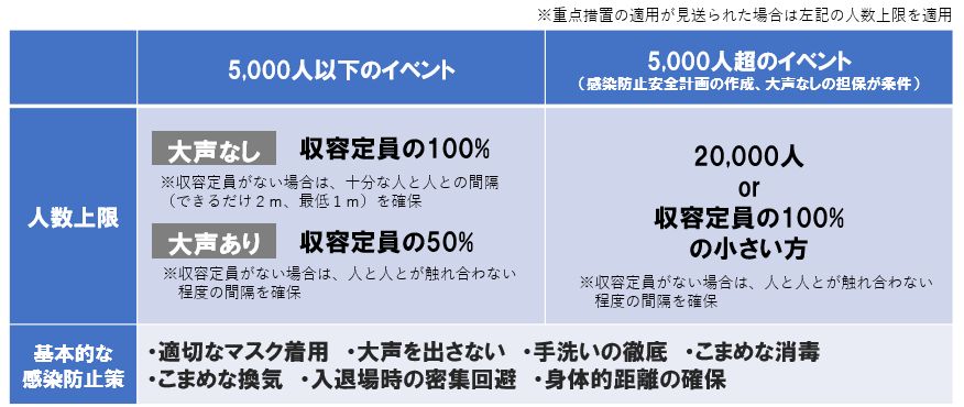 開催する場合は、以下の人数を上限とし、基本的な感染防止策を徹底
