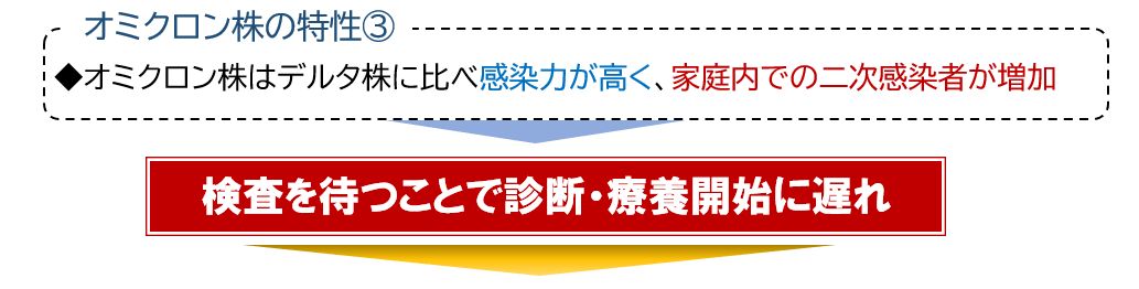 - 感染者の同居家族である濃厚接触者が有症状となった場合、医師の判断で検査なしでの診断を可能とすることで、療養開始の遅れを防ぐ