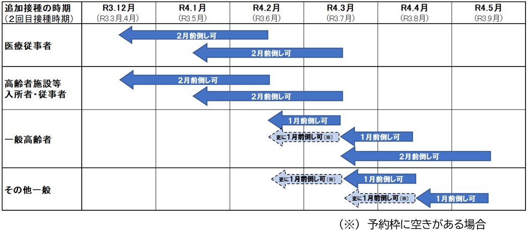 - 医療従事者、高齢者施設等入所者・従事者:2か月前倒し