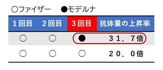 - 1回目、2回目とは異なるワクチンの接種(交互接種)によって抗体量の上昇が期待できる