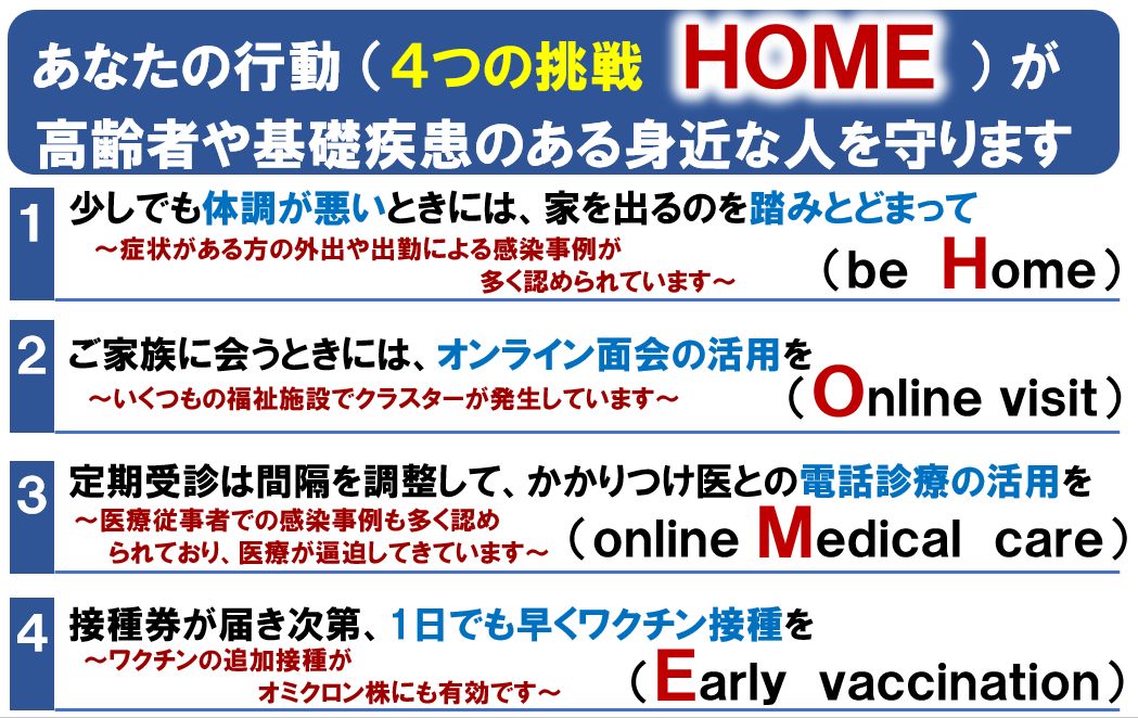 特に、最近では高齢者福祉施設や学校、児童福祉施設等で感染が増加傾向で推移しており、まん延防止等重点措置に基づく対策の継続に加え、こうした施設等における感染対策の徹底・強化が必要