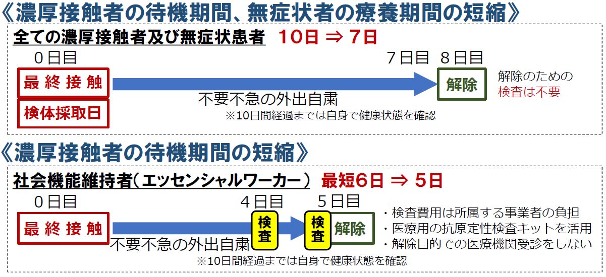 濃厚接触者の待機期間、無症状者の療養期間の短縮