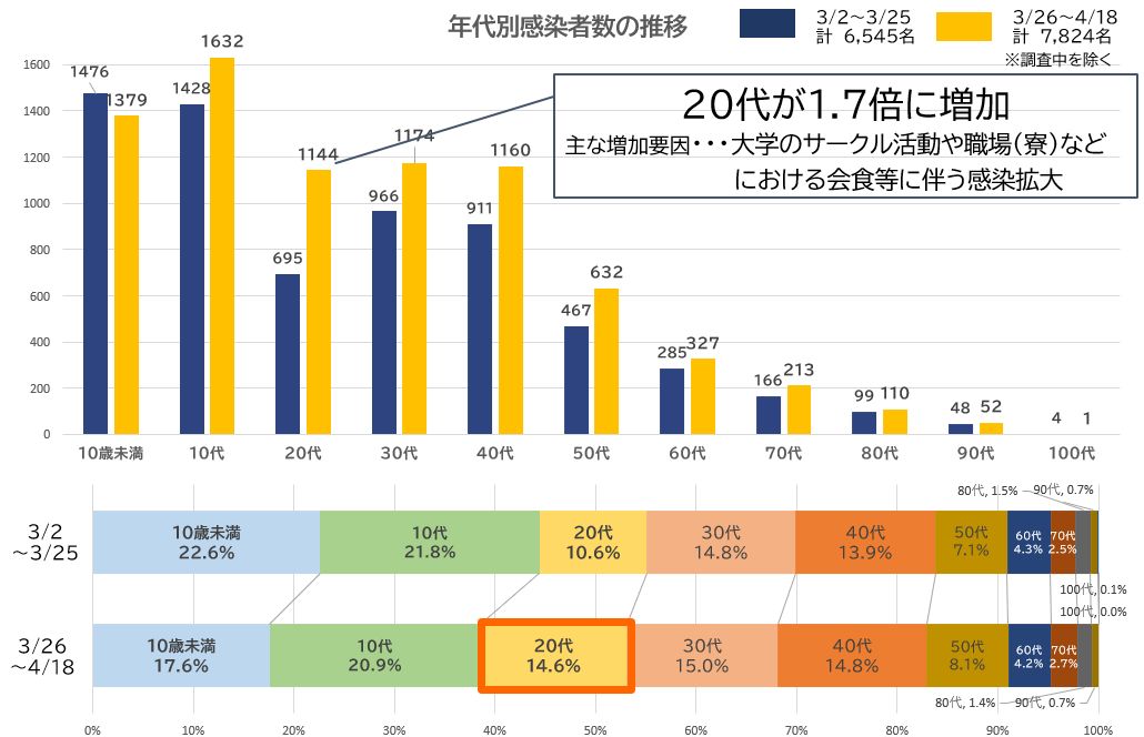 年代別発生状況 ※4月18日時点