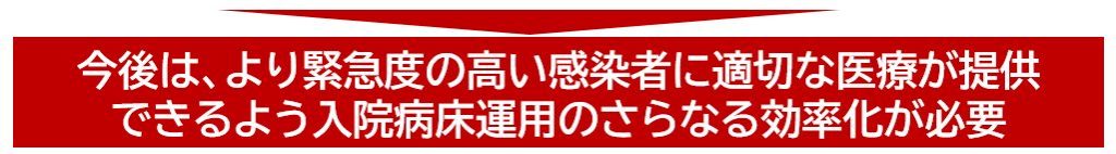 こうした状況を踏まえ、今後は、軽症・無症状であれば、原則、入院以外(宿泊療養・自宅・施設等)での療養としますので、県民の皆様のご理解とご協力をお願いします