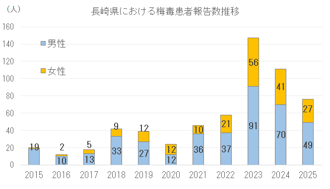 長崎県の梅毒発生状況 (2025年11月27日時点)