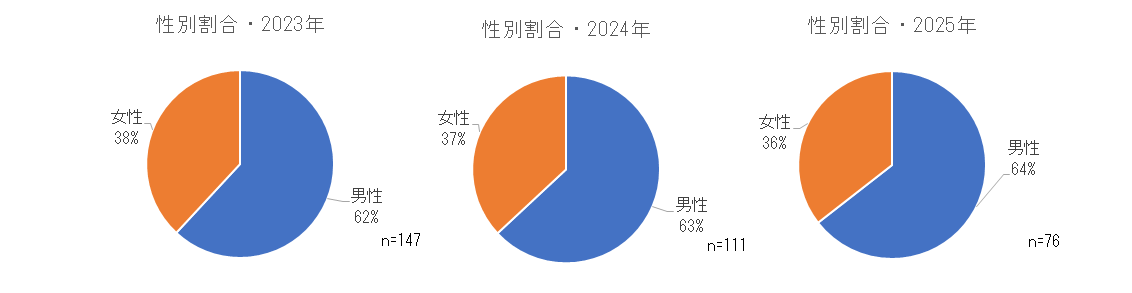 - 2023年と2024年の報告において、性別割合に大きな違いはありません。