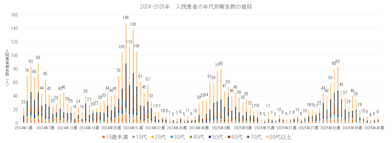 2025年 新型コロナウイルス感染症入院患者年代別報告数[PDFファイル/54KB]