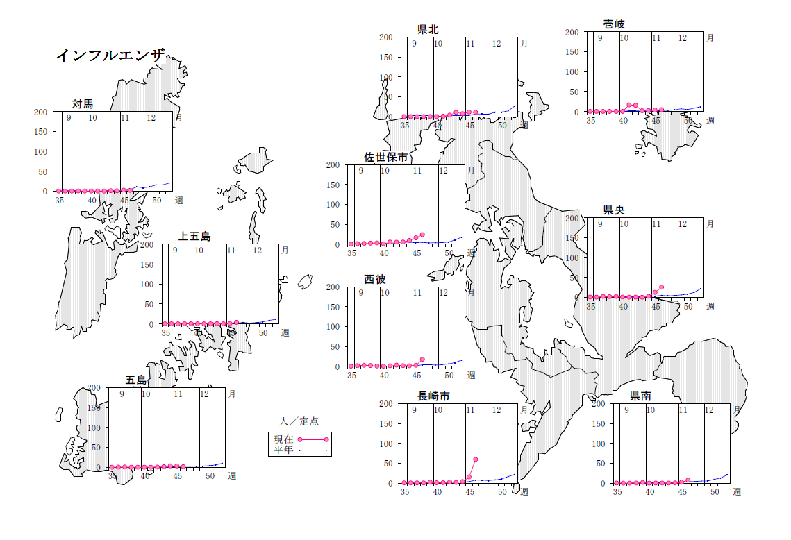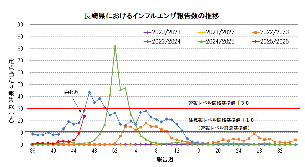 2025年第46週に、長崎県では、インフルエンザ流行注意報が発表されました。
