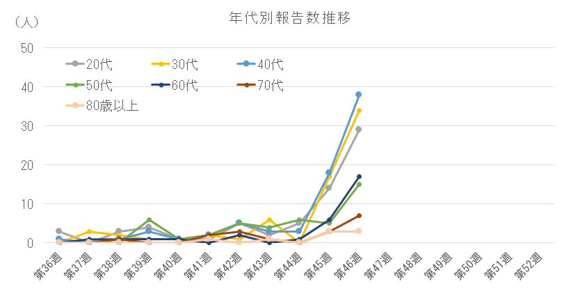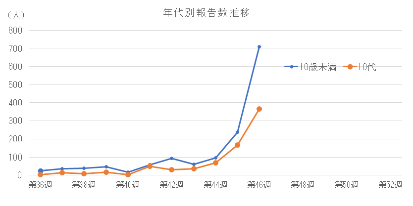 - 2025年第46週(11月10日から11月16日)の定点当たり報告数は「23.92」でした。