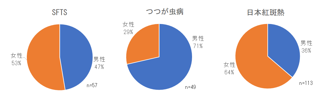 長崎県で患者の報告があるダニ媒介感染症には、重症熱性血小板減少症候群(SFTS)、つつが虫病、日本紅斑熱があります。