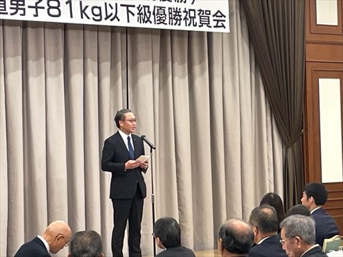 12月20日、大石知事は永瀬貴規選手の「パリオリンピック優勝祝賀会」に出席しました。