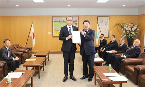 12月25日、佐々町の古庄町長など関係者の皆さんが県庁を訪れ、「国道204号の歩道整備」など10項目を大石知事へ要望されました。