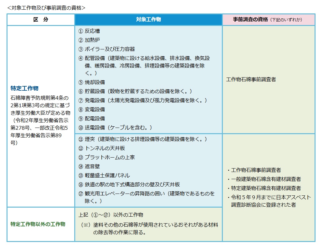 工作物の解体・改修工事を行う際は、資格者等による事前調査の実施が義務付けられます。