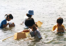 こどもたちの興味や関心に基づいて、自然観察やリサイクル活動など、地域の中で身近にできる環境にやさしい活動を自由に取り組みます。