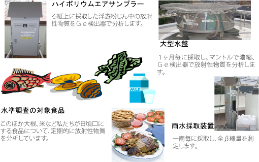 長崎県では、原子力規制庁の委託を受け、過去の大気圏内核実験に伴う放射性降下物や原子力施設からの影響の有無を把握するため、一般環境中(雨水や食品等)の放射能濃度を調査しています。