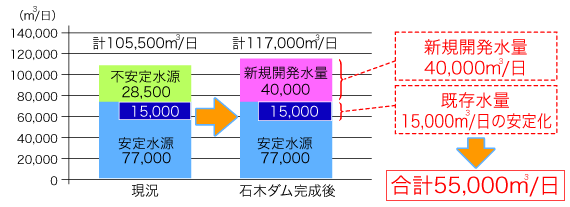 佐世保市の新たな水源として、日量4万m3の水道用水を供給します。