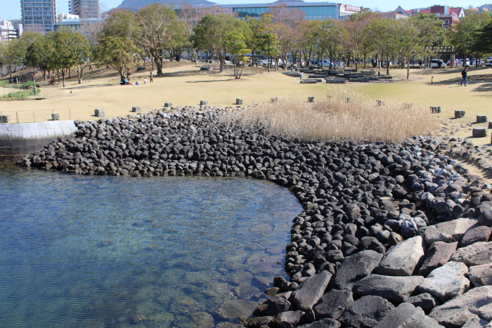 また、前面はボードウォーク等を整備し、親水性のある岸壁として生まれ変わりました。さらに、この地区の駐車場として、県営出島駐車場を平成12年4月に供用開始しました。