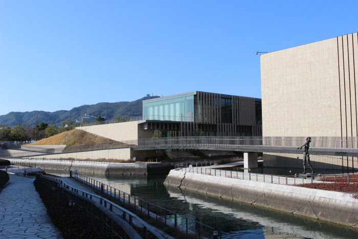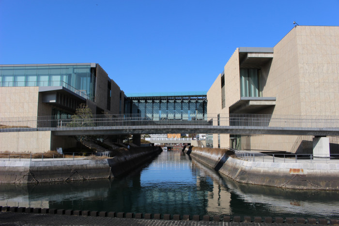 この地区の運河をはさんだ敷地9,981平方メートルに新しい県立美術館を建設しました。