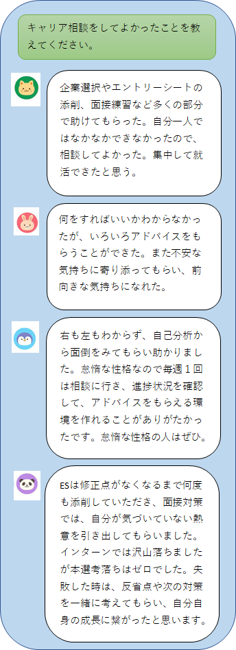 【4】キャリアコーディネーターに相談してよかったことを教えてください。