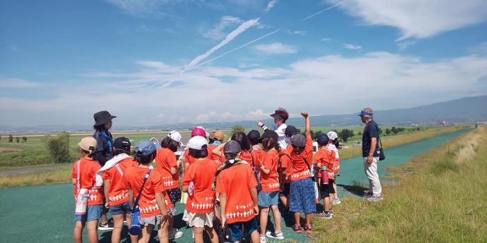 諫早湾干拓が果たしている役割を正しく知ってもらうため、地元の子ども会や老人会などの皆様を対象に諫干見学会を実施しています。「歴史」「防災・環境」「農業」という3つのテーマでコースを設定し、ガイドの説明を受けながら見学します。