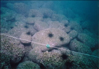 「磯焼け」とは、大型の海藻が消滅し、海底の岩や石が露出した状態をいいます。