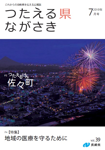 「つたえる県ながさき」第39号(令和元年7月号) プレゼントの応募はこちらをクリック新しいウィンドウで開きます デジタルブック(電子書籍版)はこちらをクリック(外部リンク)新しいウィンドウで開きます 全ページ つたえる県ながさき7月号全16ページ[PDFファイル/6MB] 表紙 つたえる県ながさき7月号表紙[PDFファイル/755KB] つたえるけん 佐々町 つたえる県ながさき7月号つたえるけん(2ページから3ページまで)[PDFファイル/2MB] 特集 地域の医療を守るために つたえる県ながさき7月号特集(4ページから7ページまで)[PDFファイル/1MB] つたエールけん、すすめるけん 長崎県医師臨床研修協議会「新・鳴滝塾」 わくわく乗船券・航空券で県内の「しま」を楽しもう! つたえる県ながさき7月号つたエールけん、すすめるけん(8ページから9ページ)[PDFファイル/1MB] 県政トピックス、ながさきレシピ、すくすくいきいき 「県内ものづくり企業 技術展示会」を開催 緑茶のムース 7月は熱中症予防強化月間です つたえる県ながさき7月号トピックス、レシピ、すくすくいきいき(10ページから11ページ)[PDFファイル/1MB] 情報ひろば つたえる県ながさき7月号情報ひろば(12ページから13ページ)[PDFファイル/578KB] つたえる県ながさき7月号情報ひろば(14ページ)[PDFファイル/494KB] 読者プレゼント つたえる県ながさき7月号読者プレゼント(15ページ)[PDFファイル/1MB] 県民みんなでV・ファーレン長崎を応援しよう! ヴィヴィくんの紹介ほか つたえる県ながさき7月号裏表紙[PDFファイル/733KB] カテゴリー 分類 県政情報 広報 広報誌 新着情報 広報課 新着情報 新着情報 広報誌・情報誌・パンフレット 広報誌バックナンバー(平成31年度) このページを見ている人はこんなページも見ています