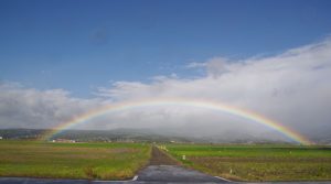 | 虹のアーチがかかるレアな光景 |