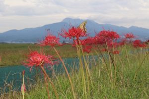 | 内部堤防のところどころで彼岸花の姿を見ることができます(9月ごろ) |