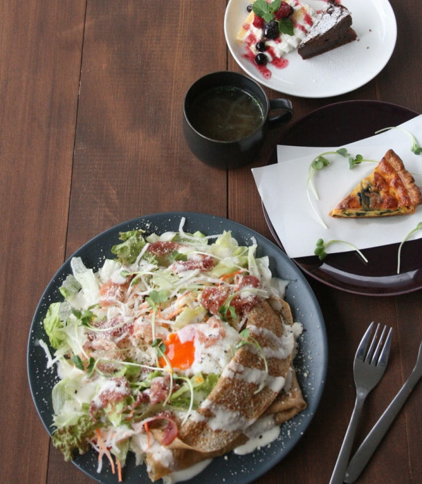 10種類以上の野菜を使用した豊富なメニューがあり、健康に気を使った食事やスイーツをお楽しみください。