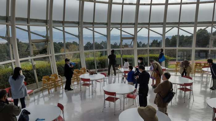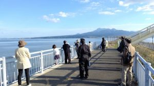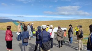 ガイドの説明のもと、眼下に広がる諫早湾干拓地の様子を眺めました。