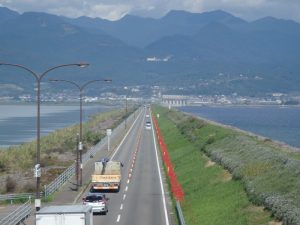 どこまでも続く真っ直ぐな道 国営諫早湾干拓事業によって整備された潮受堤防。堤防上には、地域の交通アクセス改善を目的に、諫早市高来町と雲仙市吾妻町を結ぶ「雲仙多良シーライン」の愛称で親しまれる農道が整備されています。約7kmにもわたって続く直線の道!ほかではなかなか見ることができない光景です! 場所 写真 道路の中間地点には、有明海といさはや新池(調整池)を望める展望遊歩道橋などが整備されています。 カテゴリー 分類 しごと・産業 農業 諫早湾干拓 いさかんの風景 このページを見ている人はこんなページも見ています