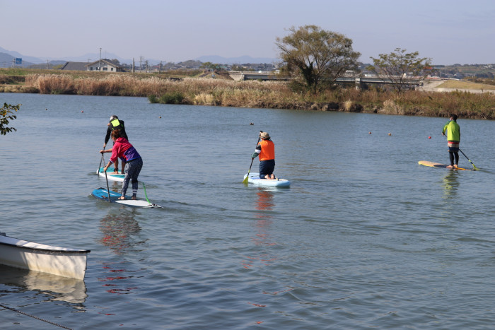 競技用ボートの練習場として高いポテンシャルを有する本明川ボート水域(本明川下流域)。令和2年度は、ボートやカヌー、SUPなど複数の水上スポーツが融合した、「本明川スポーツフェスタ」(本明川スポーツフェスタ実行委員会・諫早湾干拓にぎわい創出協議会主催)が開催されました。