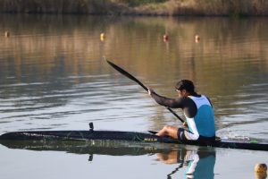 「パドル」を使用して前方へ漕ぎ進む競技です。