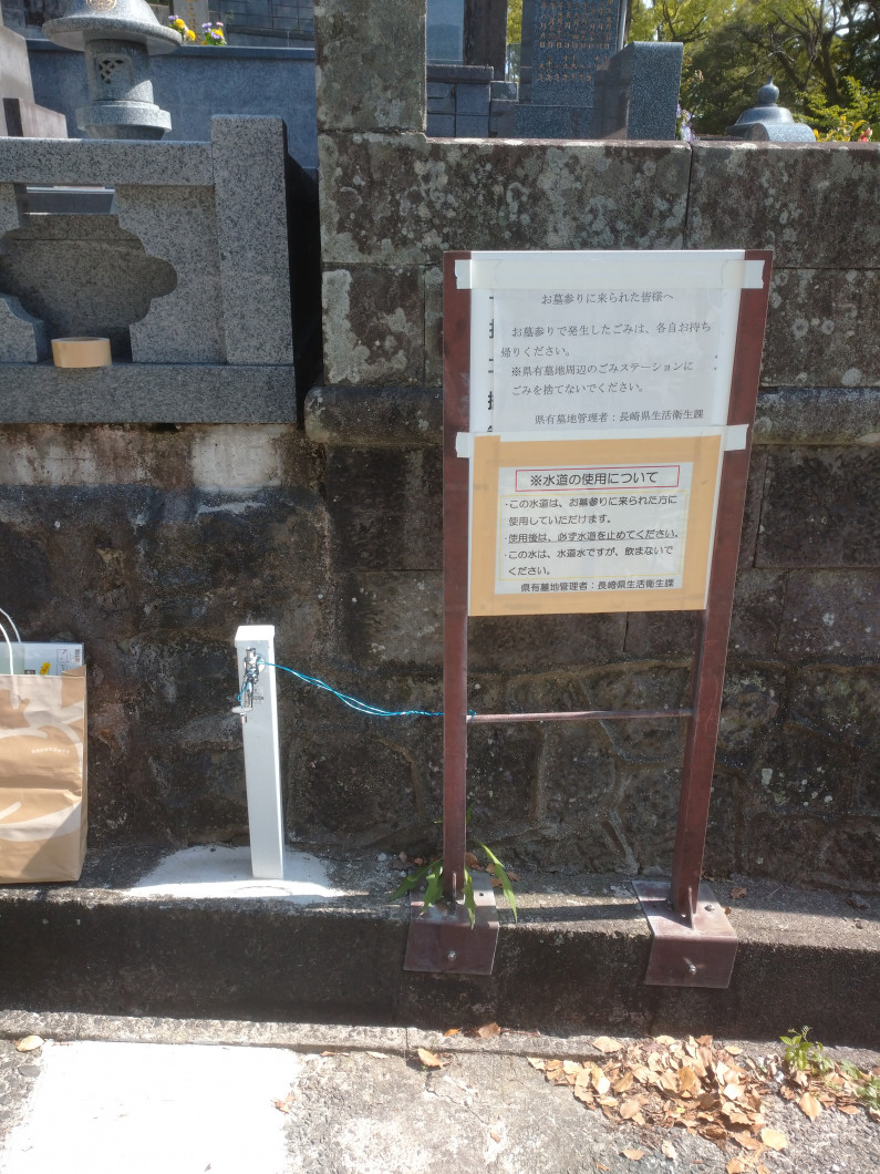 ・県有墓地の入口付近に水道を設置しましたので、お墓をお参りする際はご利用ください。