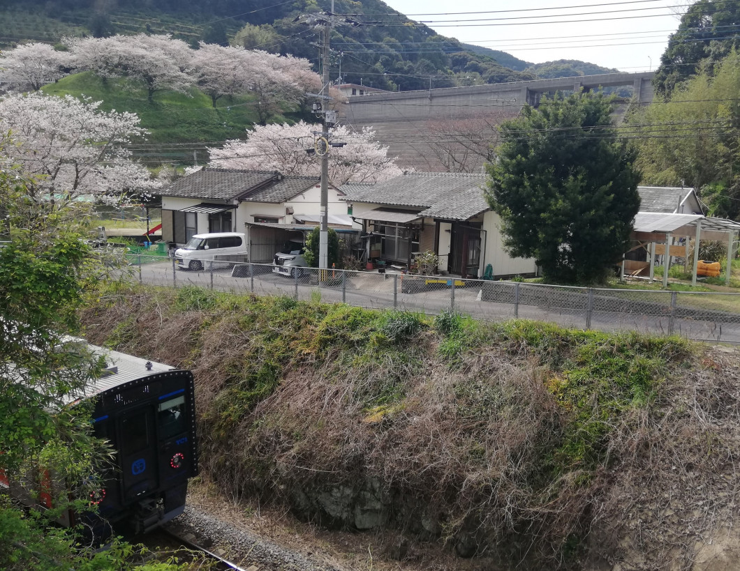 長崎県西彼杵郡長与町本川内郷にある長与ダムの桜が満開を迎えていました。ちょうどJR長崎本線(長与経由)の列車が通過し、カンカンと高鳴なる胸の鼓動を抑えられない春の日でした。