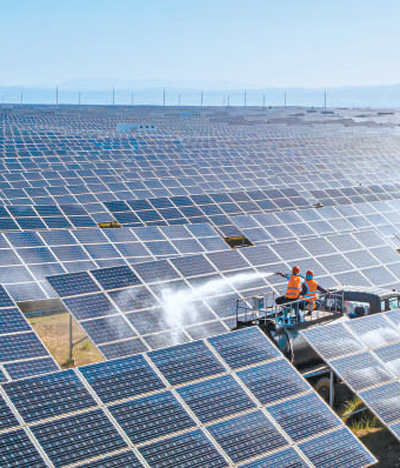 (パネルの洗浄作業、「人民網日本語版」より[1])