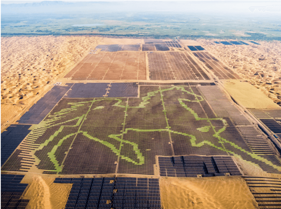 (内モンゴル自治区クブチ砂漠の太陽光発電パスワード、元一エネルギー網より[1]
