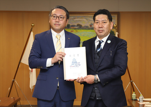 2月1日、大石知事は、大村市新幹線フル規格促進協議会の園田会長(大村市長)より、九州新幹線西九州ルートの全線フル規格による整備の早期実現等について、要望を受けました。