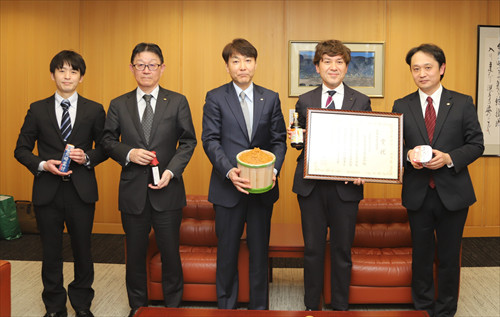 2月5日、長工しょう油味噌協同組合の皆様が、昨年11月に開催された「第64回全国味噌鑑評会」麦みそ部門における日本一(農林水産大臣賞)受賞を浦副知事に報告されました。