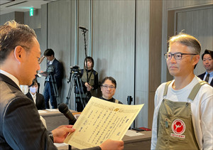 大石知事は、賞状と記念品を受賞者に授与し、「新商品づくりに情熱を持って取り組まれた受賞者の皆さんの姿勢に心から感謝申し上げる」と述べました。