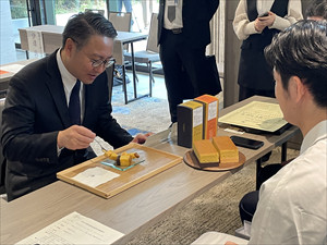 その後、知事は受賞商品を試食したり手に取ったりしながら、受賞者の皆さんと意見交換を行いました。