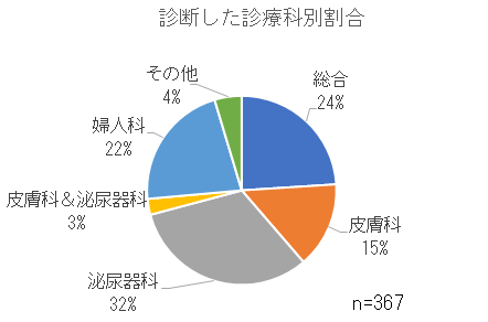 - 症状に応じて、泌尿器科、皮膚科、婦人科(産婦人科)で診断されています。
